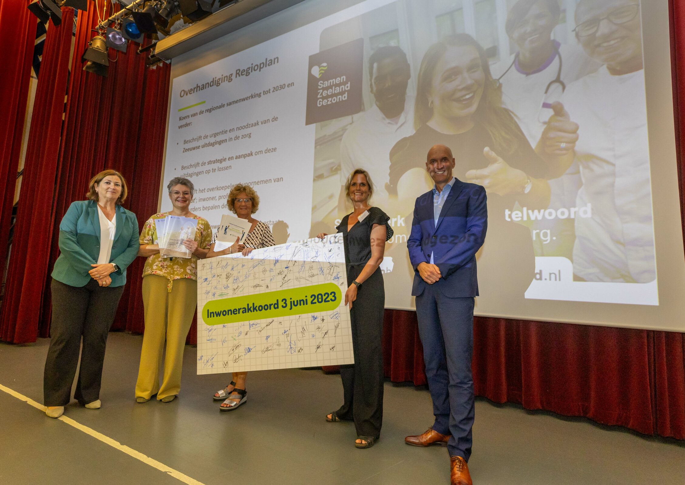 Op 11 september hebben demissionair zorgministers Kuipers en Helder het regioplan en Inwonerakkoord Zorg Zeeland in ontvangst genomen. Minister Kuipers: “Ik ben blij dat hier in Zeeland wordt gewerkt op de manier die we voor ogen hadden met het Integraal Zorgakkoord. Samen met de mensen in de omgeving kijken wat er in de regio nodig is aan zorg, en hoe dat in te richten. Zo houden we de zorg van hoge kwaliteit en toegankelijk voor iedereen”. Het aanbieden van het inwonerakkoord en regioplan, was ook meteen het startsein van de campagne ‘Samen houden we Zeeland gezond’.