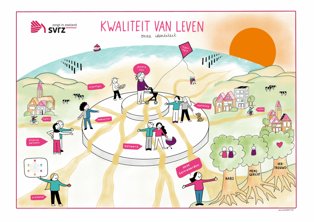 Een beeld zegt meer dan duizend woorden. Daarom zijn de identiteit en de kernwaarden van SVRZ samengebracht in de onderstaande tekening.