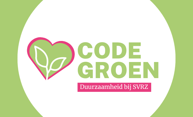 Om de bewustwording over duurzaamheid onder medewerkers te verhogen, zijn we een nieuwe interne communicatiecampagne gestart: Code Groen. De naam ‘Code Groen’ is een knipoog naar code geel, oranje en rood; kleurcodes die steeds vaker voorkomen door de klimaatveranderingen. SVRZ zorgt voor een nieuwe kleurcode met al onze inspanningen: Code Groen. Het beeldmerk heeft een hart: de link met de zorg én het belang dat wij aan een beter klimaat hechten.